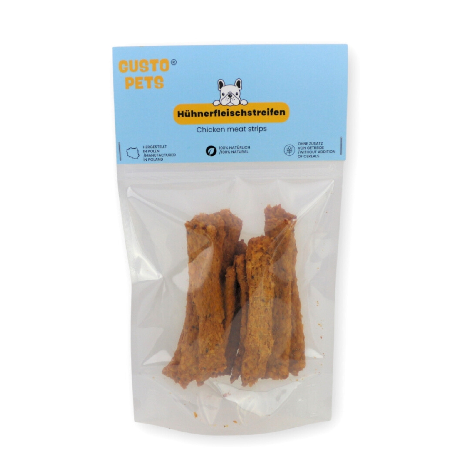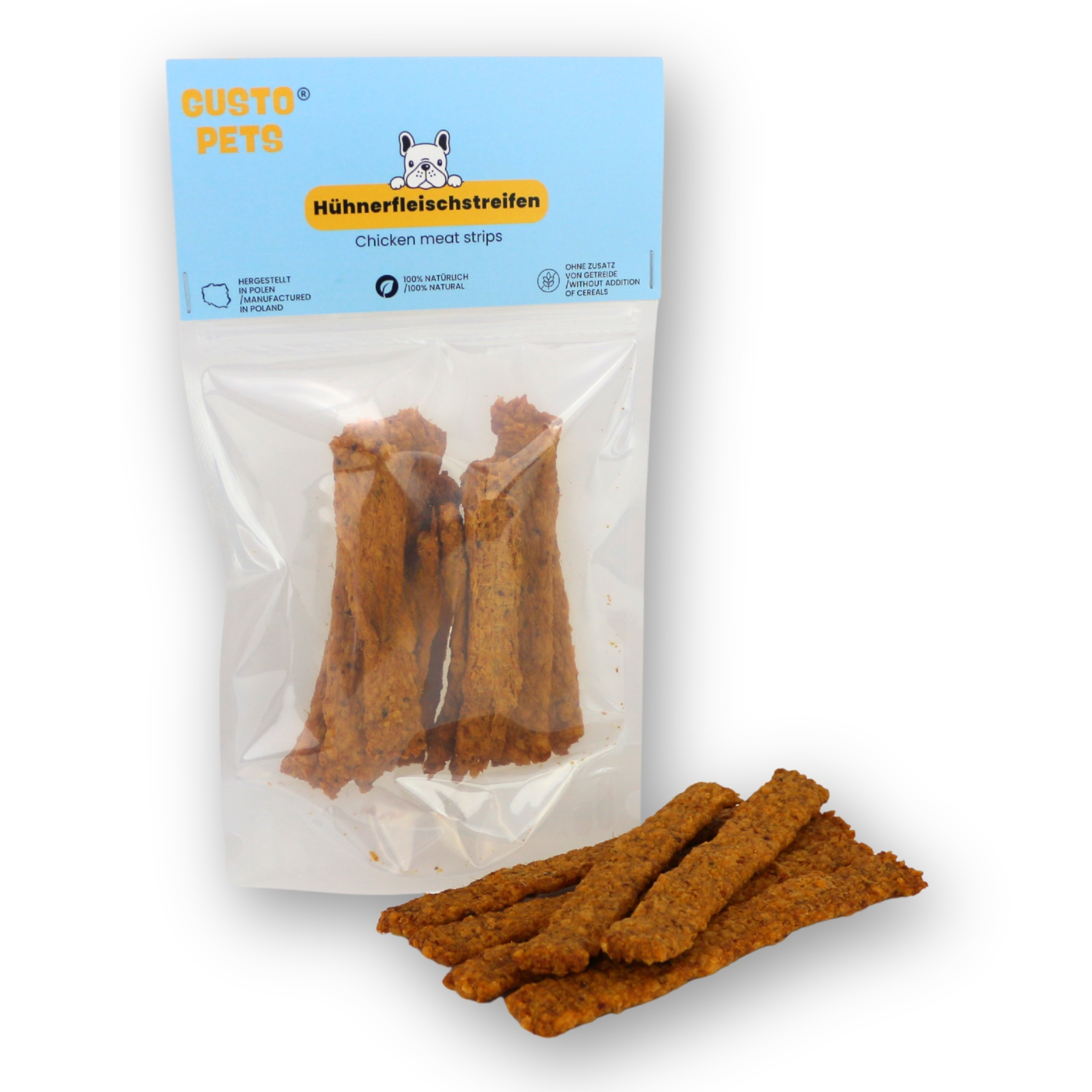 - Naturalny przysmak dla psów – Paski mięsa z kurczaka w 100% naturalne, bez sztucznych dodatków i konserwantów