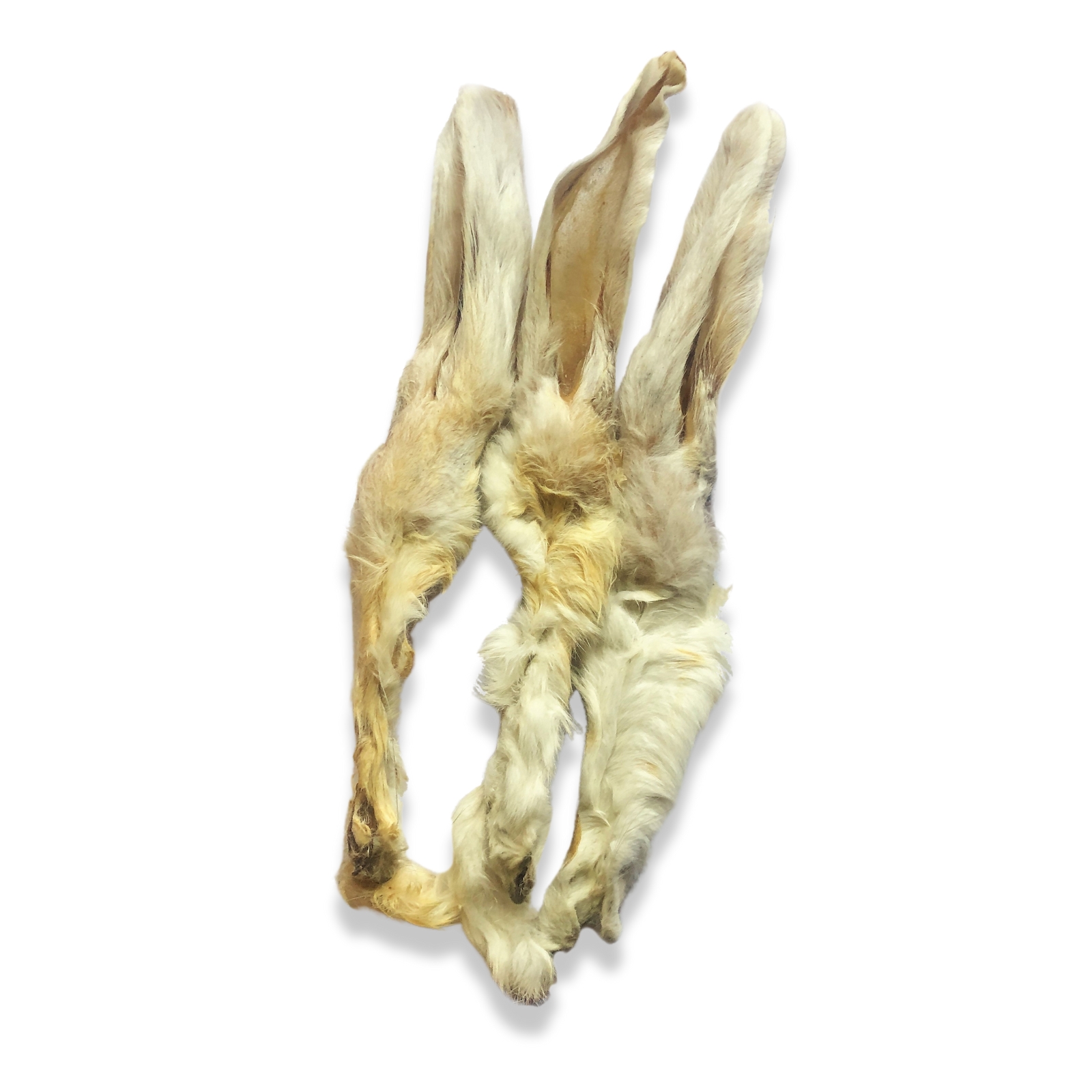 - ZAWARTOŚĆ OPAKOWANIA: Zestaw 3 sztuk naturalnych uszu króliczych z zachowanym futrem, idealnych jako przysmak dla psa